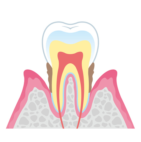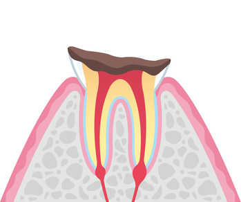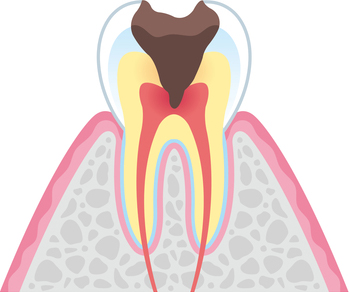 エナメル質の奥の象牙質にまで細菌が進行している状態です。象牙質は神経に近いため、知覚過敏として歯がしみるようになります。虫歯を削り取り、詰め物や被せ物をするのが基本です。