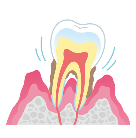 歯周病はお口の中に存在する細菌によって起こる炎症性の感染症です。初期の状態は歯肉だけに炎症が起こるので歯肉炎と呼ばれますが、進行すると炎症が広がっていき、次第に歯を支える骨にもダメージが及びます。