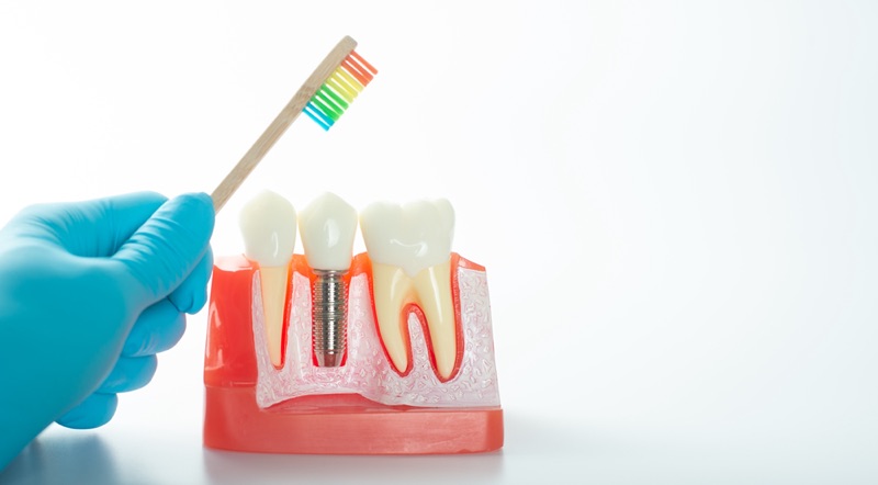 インプラントは適切なケアをしないと、歯周病のような状態になります。これを防いで長く維持するには、当院での定期的なメインテナンスと、ご家庭でのセルフケアを両輪で続けていく必要があります。